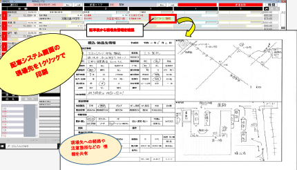 配車画面では乗務員がこれまで情報収集した現場先情報の確認や印刷ができるようになっており、皆で必要な現場情報の共有を行い輸送品質の向上に努めております。 -