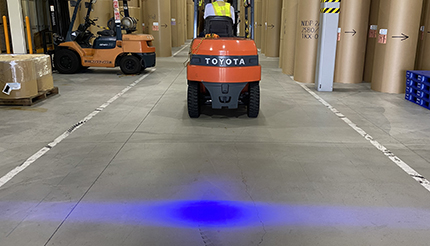 走行音の小さなバッテリー車両の接近を周囲の作業員に対し視覚で知らせることで接触を防止します。 -