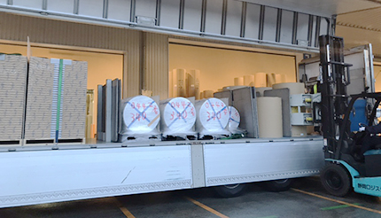 紙製品とそれ以外の製品を混載できる車両、スキルを備えたドライバーがいることで如何なる状況でもスムーズに対応出来ます。