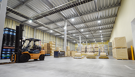 事務所内照度に引けを取らぬ視認性の良い倉庫で確実な検品、誤出荷防止に効果を発揮しています。 -