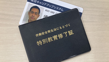職長・安全衛生責任者教育をすべてのオペレーターが受講し、現場での安全管理に務めています。職長としてすべき業務を理解し、権限が与えられた安全衛生業務に対して責任を持って推進することが要求されます。